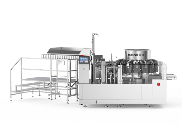 1. 基于BD-8ZK10-130款基礎上進行改良,現(xiàn)一臺機器產(chǎn)能可達到原來兩臺機器產(chǎn)能的效率,包裝速度120包每分鐘,有效提升空間利用率和產(chǎn)能。